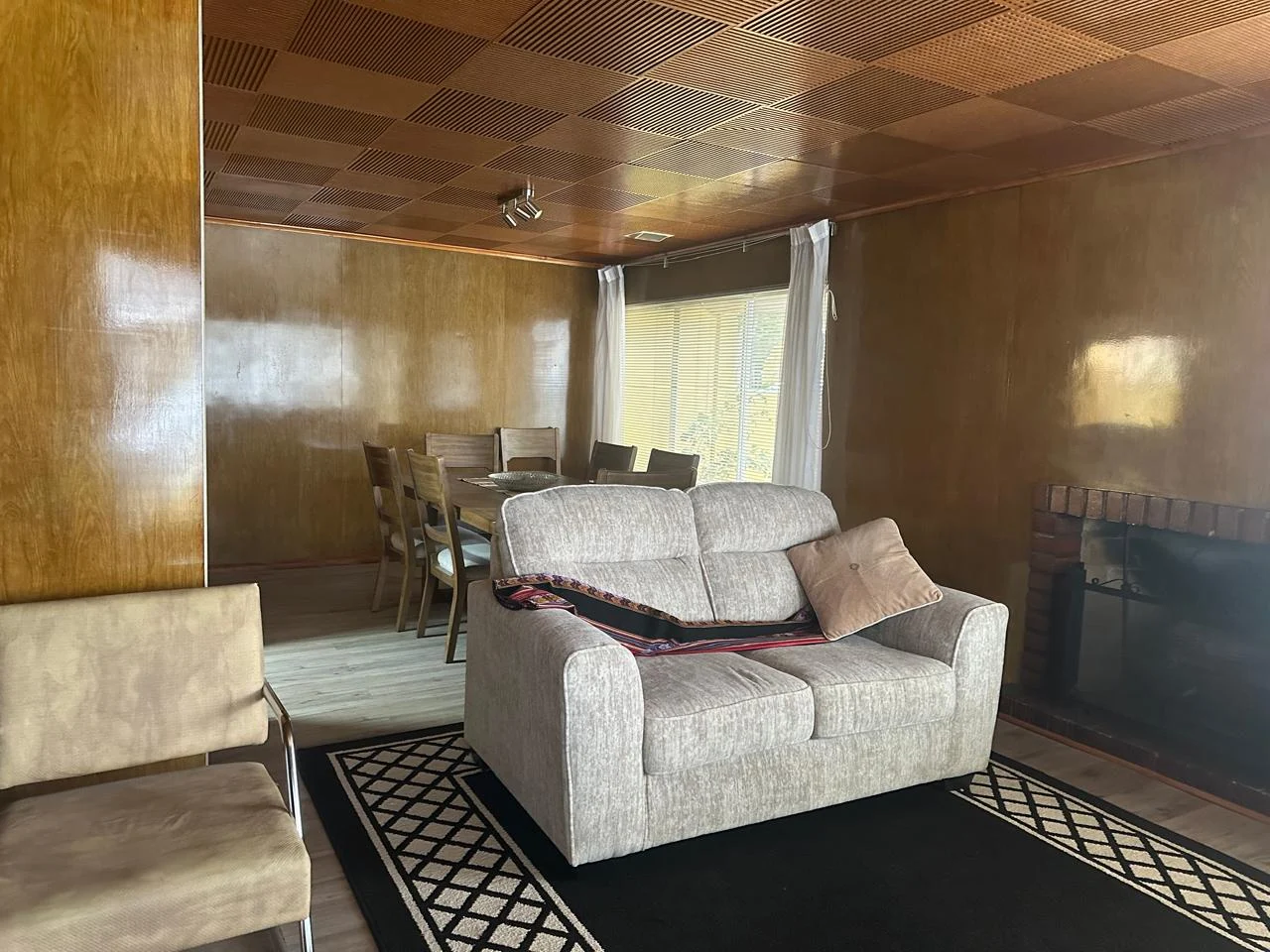 Consta de 2 dormitorios, 2 baños, living comedor, cocina, 2 salas de estar y un gran garage techado que fue local comercial...