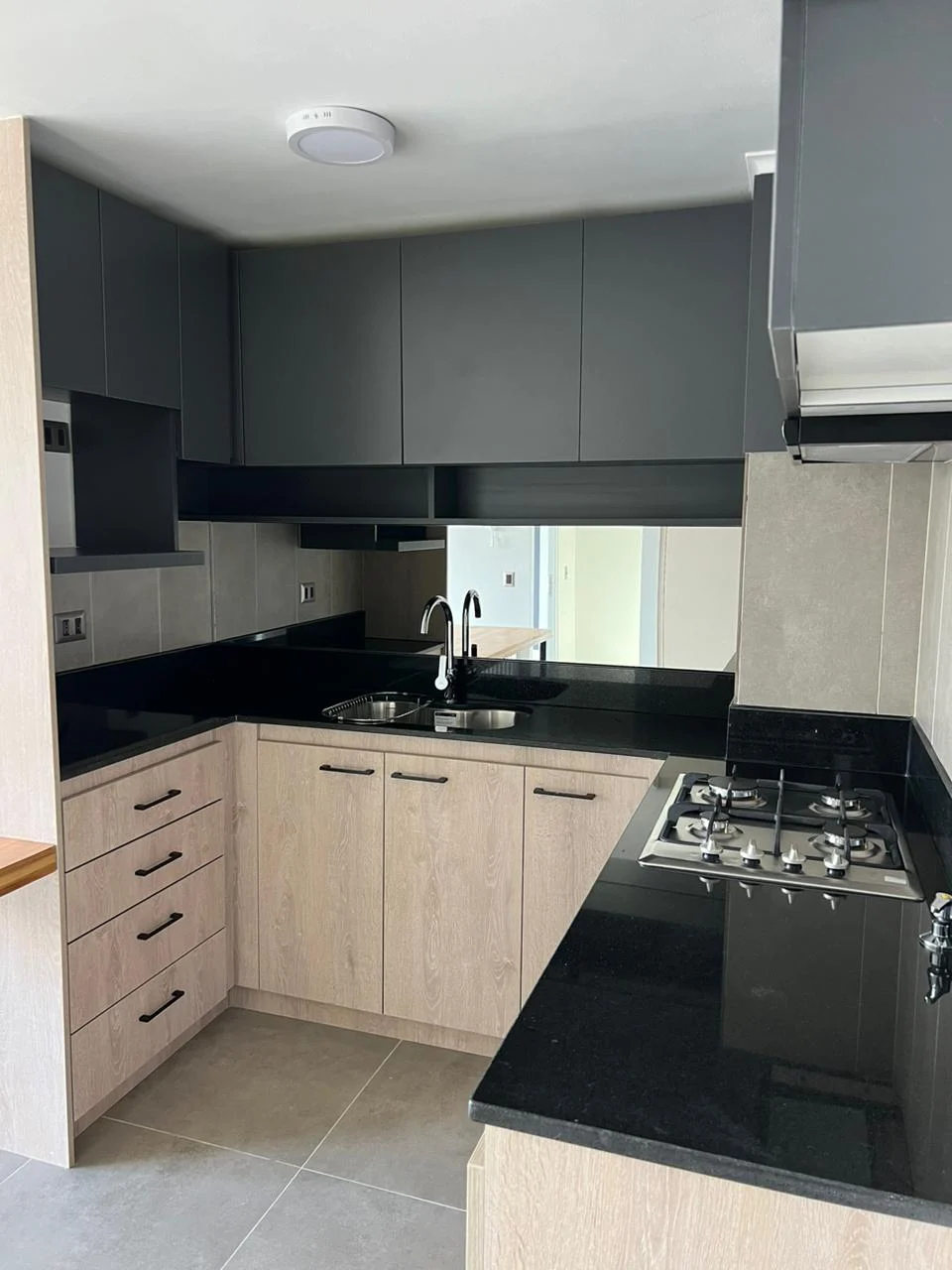 Cocina americana equipada (horno eléctrico, encimera y campana)